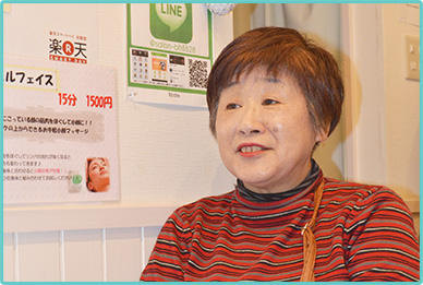 Q.最後に、何でもいいので感想をお聞かせください。居心地の良い空間で気持ちも楽しくなり身体の不調がなくなることでストレス解消にもなるなんて良いことづくめで満足です。スタッフの方も皆さん話を聞いてくれて優しいですし、親切にしてくれてリラックスすることができました。自分自身が元気でいられるようにずっと通いたいし、いつまでもお店を続けてほしいです。 |