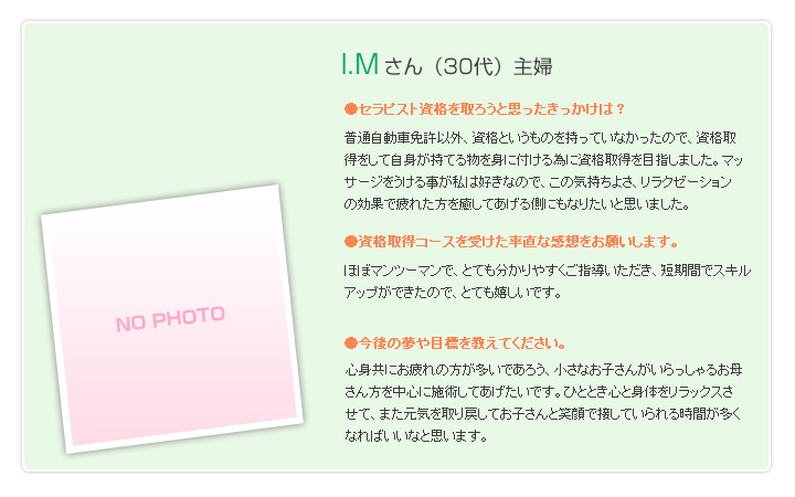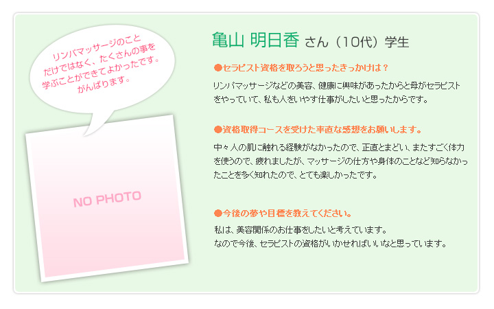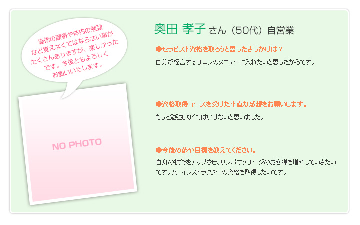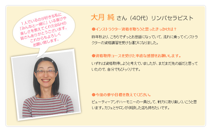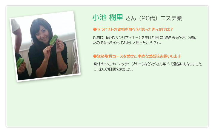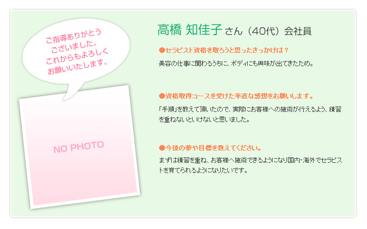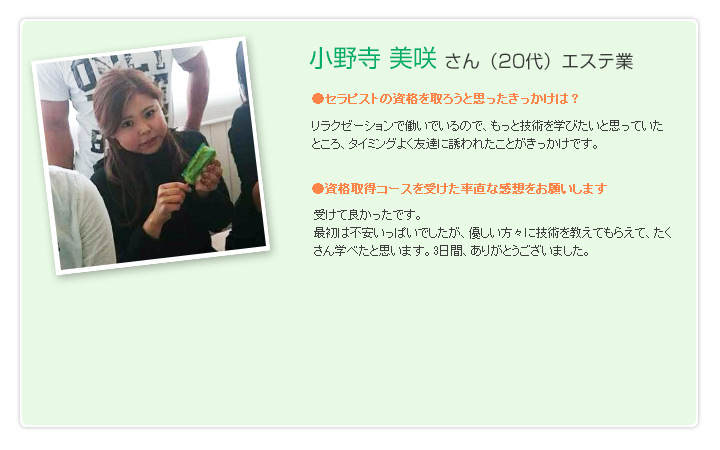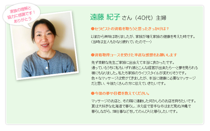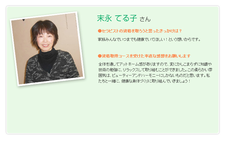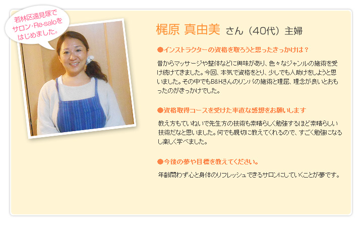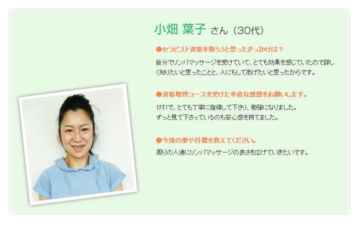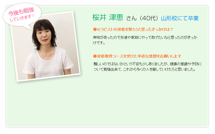 仙台市のサロン。リンパマッサージ、ヘッドマッサージ。セラピスト資格取得のお手伝い。